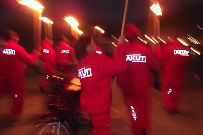 Belediye ekiplerinin sönen meşalelere ellerindeki şişelerden sık sık gaz takviyesi yaptıkları anlardan birinde AKUT grubunun aldığı gaz desteği :)